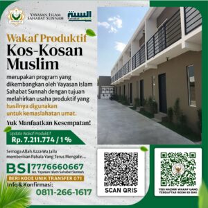 Program Wakaf Produktif Kos-Kosan Muslim merupakan program yang dikembangkan Yayasan Islam Sahabat Sunnah dengan tujuan melahirkan usaha produktif yang hasilnya digunakan untuk kemaslahatan umat.
